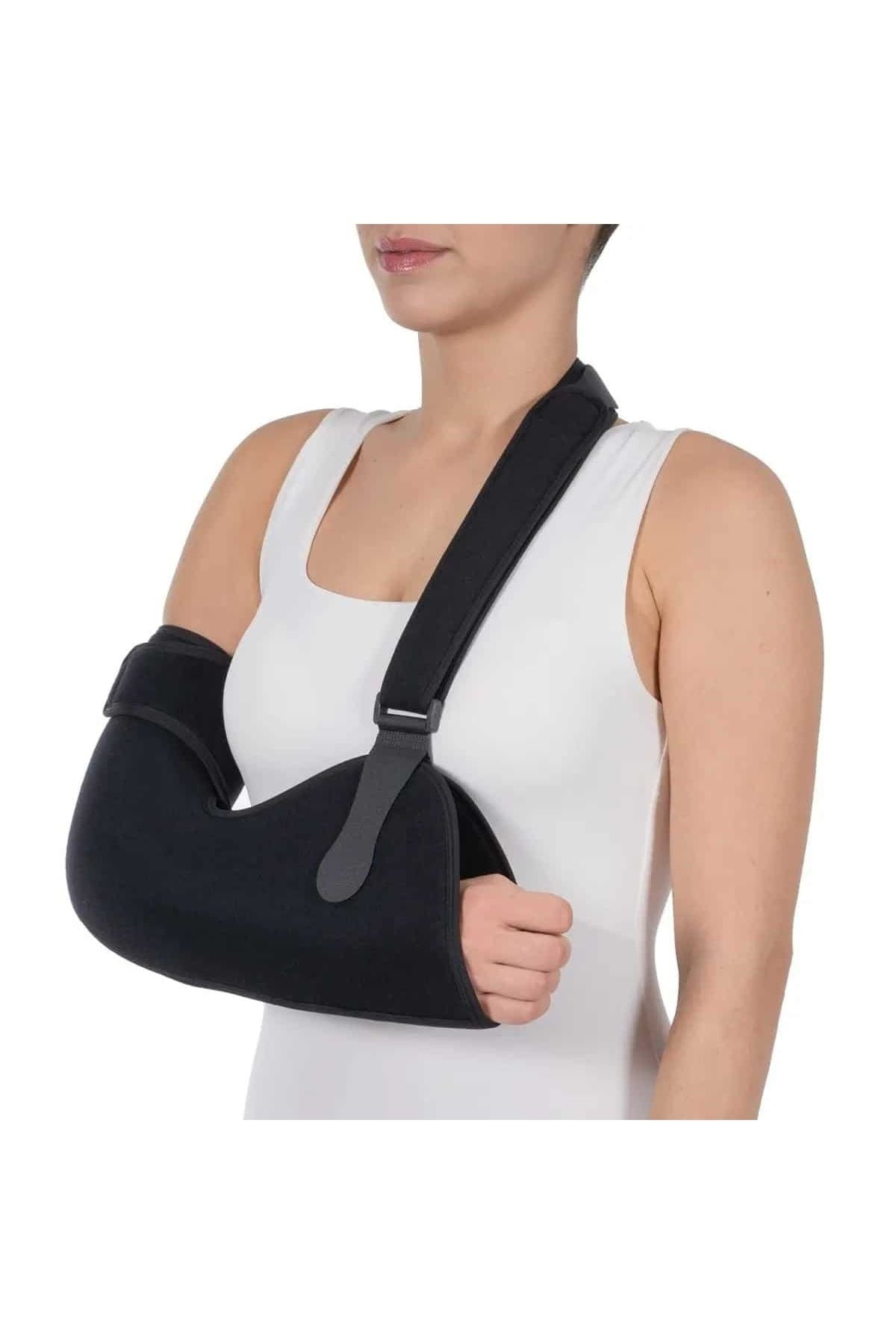 Arm Sling Lux is made of sponge fabric and thanks to its design it allows the patient's arm to be fixed parallel to the ground close to the body. It is suitable for left and right arm use. There is an additional belt for around the waist to facilitate daily use. Indications Post-operative rehabilitation; Rehabilitation of forearm diseases; Post-operative protection and stabilization purposes; S 30-33 M 33-36 L 36-39 XL 39-42 XXL 42-45 ---------------------------------------- Arm Sling With Additional Belt (Lux) It is manufactured from sponge laminated fabric. Product's design provides the patient's arm to be fixed parallel to the near trunk. It can use for both sides. There is a belt for daily use. Indications Post-operative rehabilitation; In rehabilitation of forearm diseases; Post-trauma, recovery and preservation purposes; ------------------------------------------- Écharpe de Bras Lux Fabriqué en tissu éponge il stabilise le bras du patient parallèlement au corps. Il convient à l'utilisation des bras gauche et droit. Les Indications Rééducation post-opératoire ; En rééducation des maladies de l'avant-bras ; Protection et stabilization postoperative;