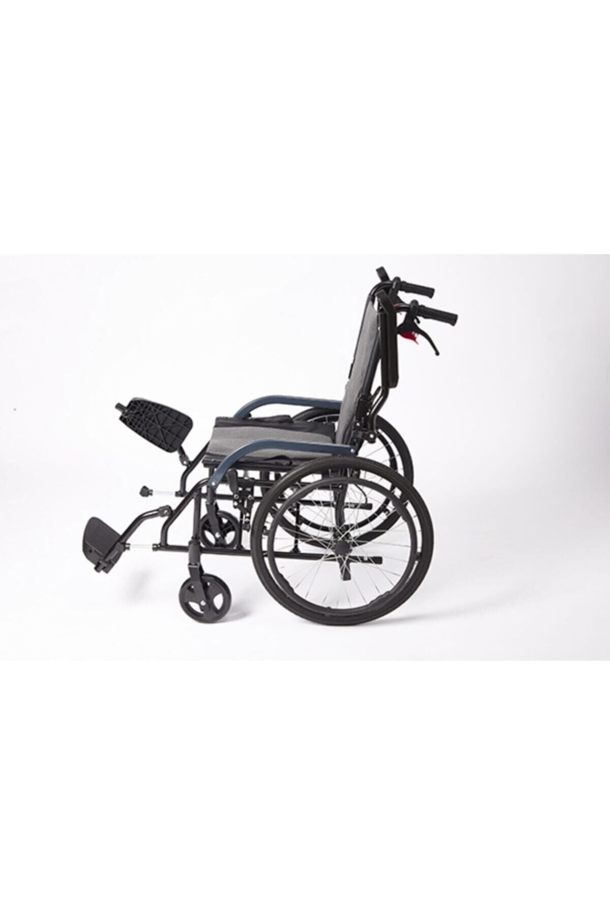LEO 164 Companion Wheelchair It is one of the most economical models among the lightest wheelchairs. Thanks to its foldable steel chassis, it is the most preferred model for travel. Since it becomes very small when folded, it saves you from a lot of storage trouble and can fit in the trunk of almost any vehicle. It has a companion brake system. Thanks to its air-filled rear wheels, it absorbs shock and provides a comfortable ride. Thanks to its light weight, you can easily lift it and place it on a high place. General Features Standard Size Areas of Use Suitable for indoor and outdoor use. Body Structure Aluminum body. Disassembly Feature Foldable. Seat Cushion / Backrest / Seat The seat and back cushion are made of easy-to-clean, stain-resistant, breathable fabric. Armrests Can be fully raised to facilitate patient transfer, anti-bacterial armrests made of PU material measuring 4.5 cm * 26 cm. Footrests Height can be adjusted in three stages according to the user, foldable and with calf support footrest. Front Wheel 6 inch 15 cm black padded front wheel. Front Wheel Fork Aluminum front wheel fork, 2 stage wheel height adjustment available Rear Wheel 20 inch (20*1- 3/8) soft black silicone filled rear wheel. Aluminum alloy rim. Movement Ring 16 inch 40 cm plastic movement ring Luggage / Pocket There is a pocket on the back where the user can put his/her belongings. Brake System There is a lockable brake system that the user can easily reach and a lockable brake system that the companion can use at the rear. Safety Belt There is an adjustable safety belt on the chair for the safety of the user. Warranty The product has a 2-year service warranty and a 10-year spare parts availability guarantee. Optional Equipment Headrest apparatus, Anti-tip wheel. Accessories Wrench Set, User Manual Cleaning / Maintenance It can be wiped with alcohol-based disinfectant diluted at 5%. Technical Specifications Seating Width 45 cm Seating Depth 38 cm Seat Height (From the Floor) 46 cm Back Height 42 cm Armrest Height 21 cm Leg Height 37-40 cm (3 stage adjustable) Product Width 60 cm Product Length 95 cm Product Height 91 cm Length Without Legs 80 cm Folded Dimensions 77*30*67 cm Folded Desi 55 Desi Carrying Capacity (Max.) 120 kg Product Weight 11.5 kg 2-year warranty